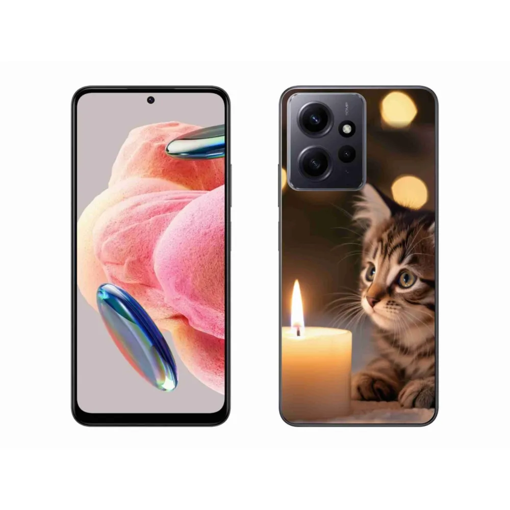 Pružný gelový obal mmCase s obrázkem na Xiaomi Redmi Note 12 4G - kotě a svíčka
