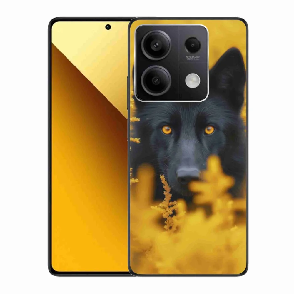 Pružný gelový obal mmCase s obrázkem na Xiaomi Redmi Note 13 5G - černý vlk 2