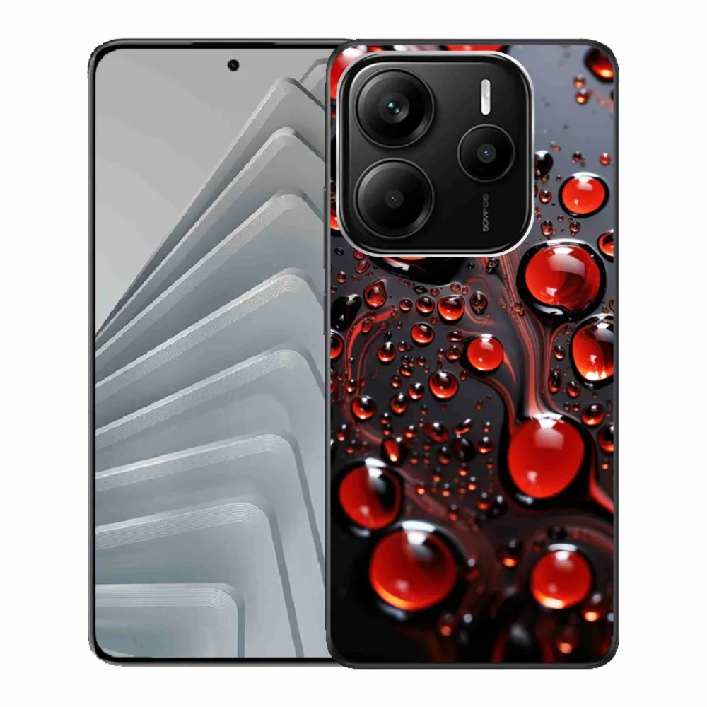 Pružný gelový obal mmCase s obrázkem na Xiaomi Redmi Note 14 5G - červené kapky 2