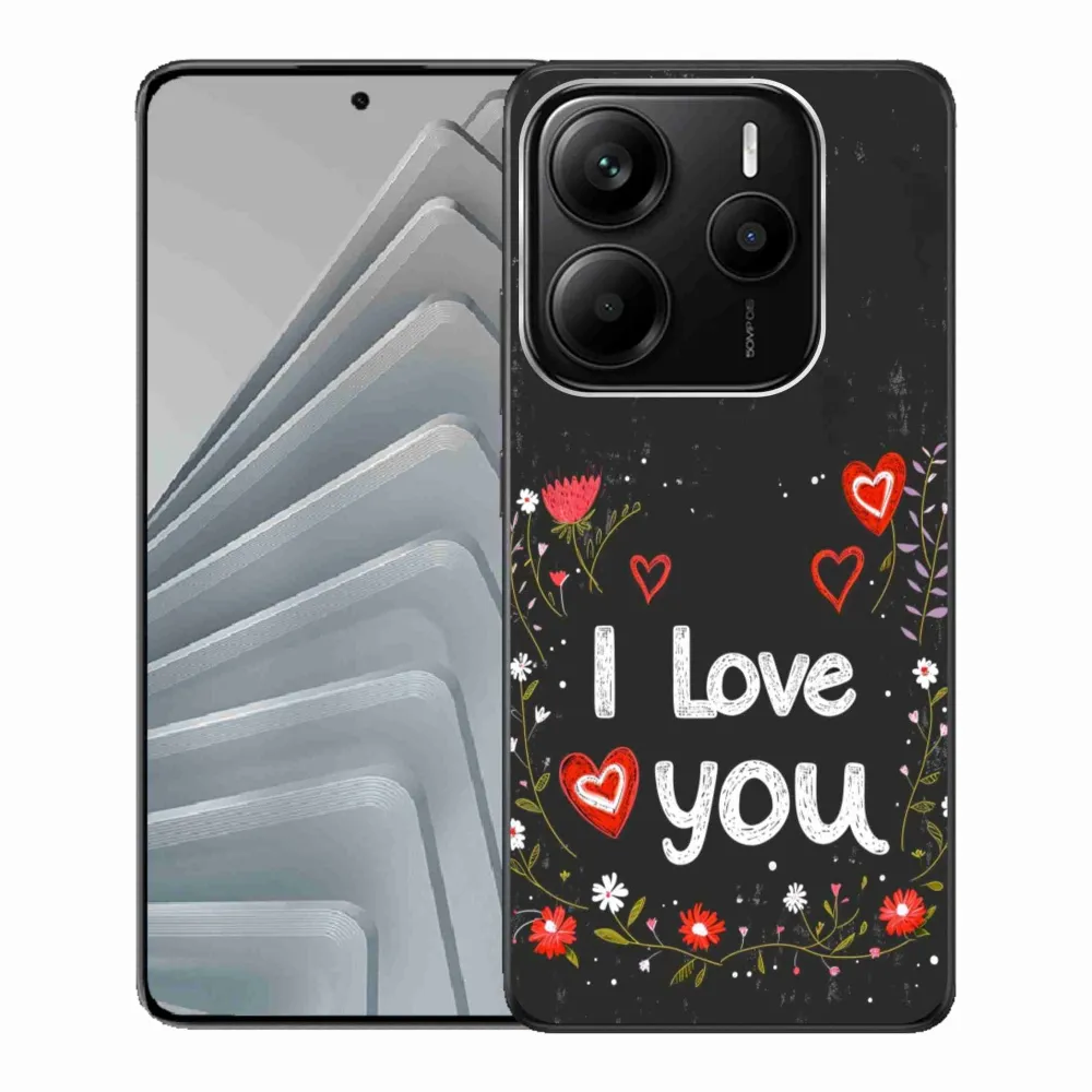 Pružný gelový obal mmCase s obrázkem na Xiaomi Redmi Note 14 5G - I love you černé pozadí