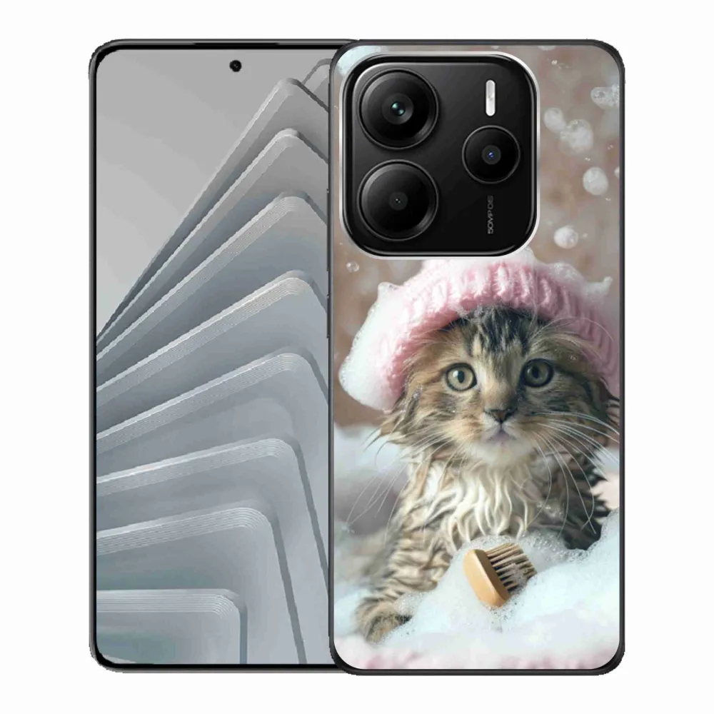 Pružný gelový obal mmCase s obrázkem na Xiaomi Redmi Note 14 5G - kotě a koupel