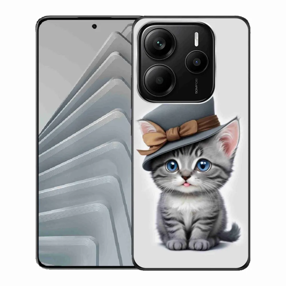 Pružný gelový obal mmCase s obrázkem na Xiaomi Redmi Note 14 5G - kotě s kloboukem