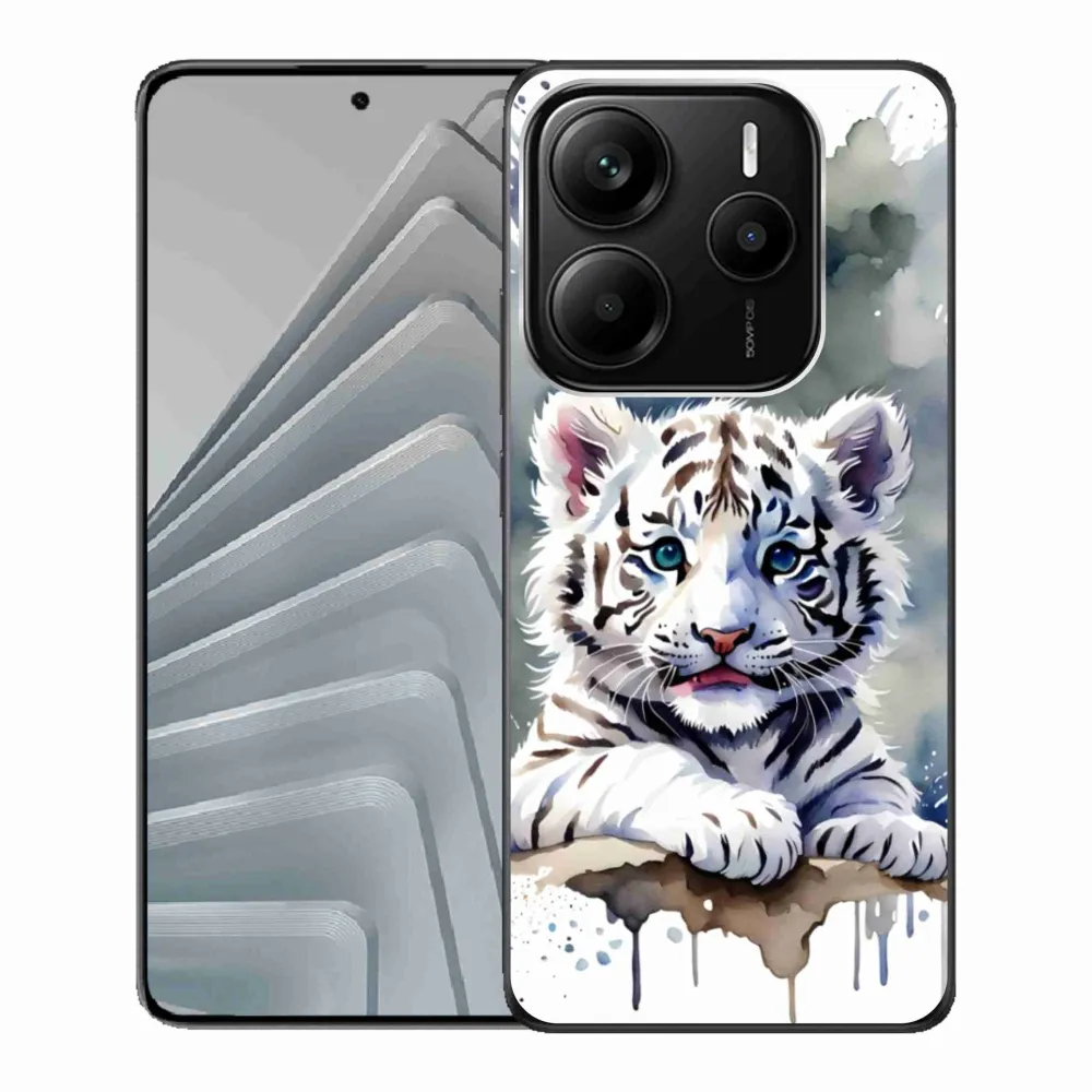 Psí pouzdro na Xiaomi Redmi Note 14 5G - mládě bílého tygra poskytuje všechny výhody gelových obalů, a to v zajímavém designu.