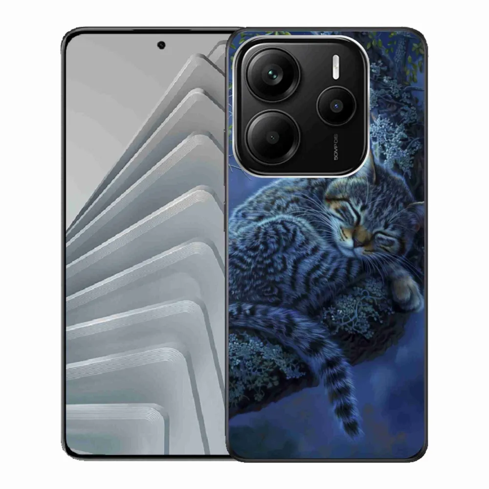 Pružný gelový obal mmCase s obrázkem na Xiaomi Redmi Note 14 5G - spící kočka