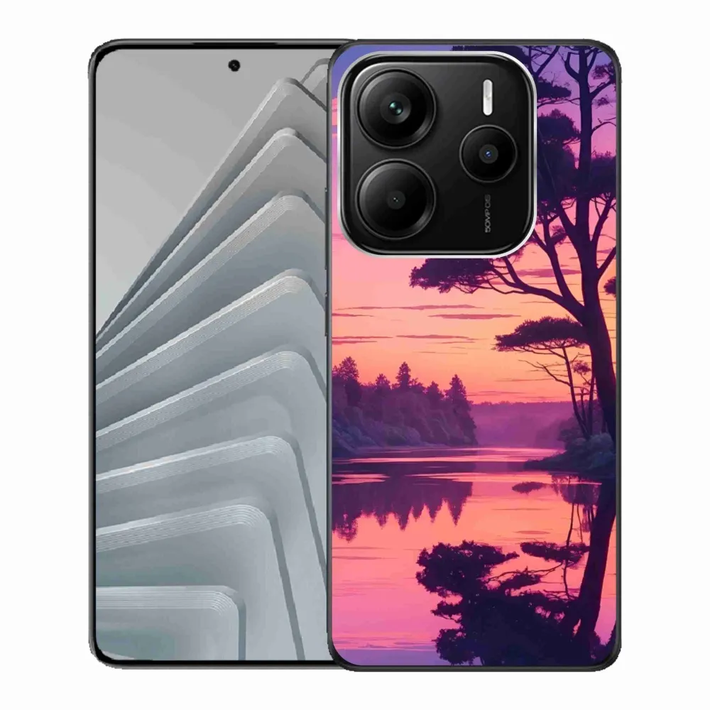 Pouzdro na Xiaomi Redmi Note 14 5G - západ slunce nad jezerem poskytuje všechny výhody gelových obalů, a to v zajímavém designu.