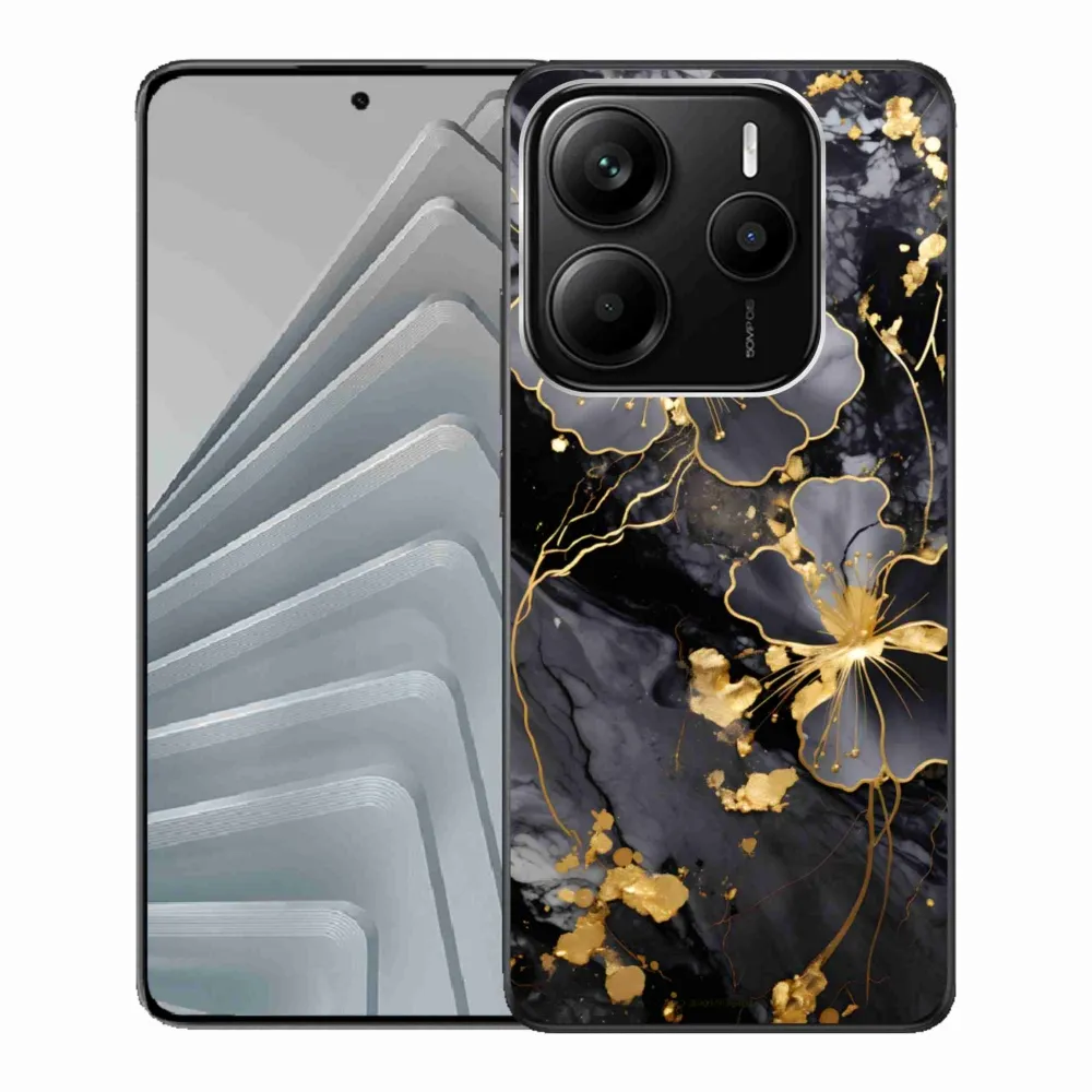 Gelový kryt mmCase na Xiaomi Redmi Note 14 5G - zlaté květy