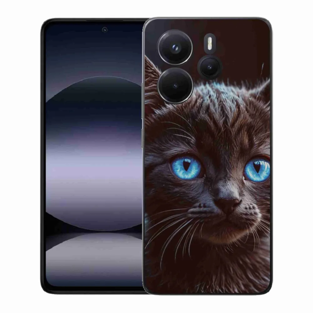 Pružný gelový obal mmCase s obrázkem na Xiaomi Redmi Note 14 - černé kotě 2