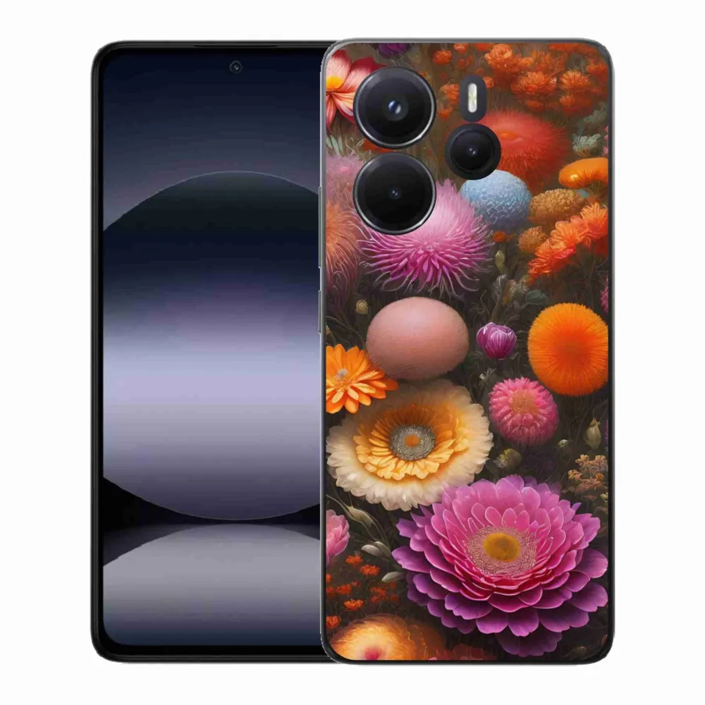 Pružný gelový obal mmCase s obrázkem na Xiaomi Redmi Note 14 - květinová kompozice