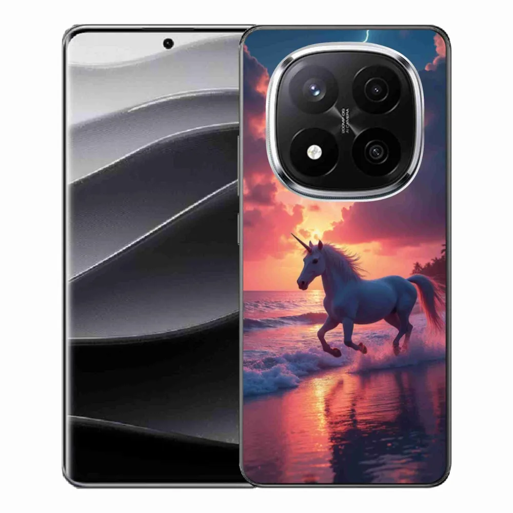 Pouzdro s motivem koně na Xiaomi Redmi Note 14 Pro+ 5G - jednorožec na pláži poskytuje všechny výhody gelových krytů, a to v zajímavém designu.