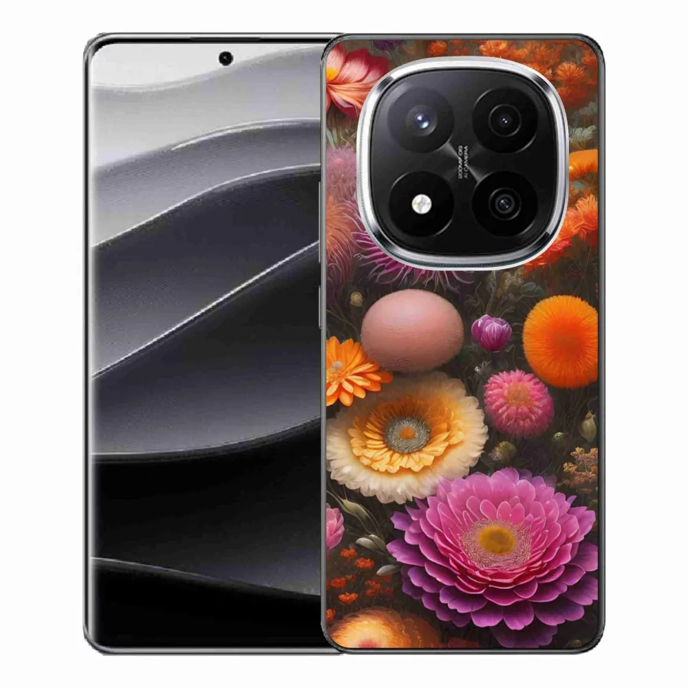 Pružný gelový obal mmCase s obrázkem na Xiaomi Redmi Note 14 Pro+ 5G - květinová kompozice