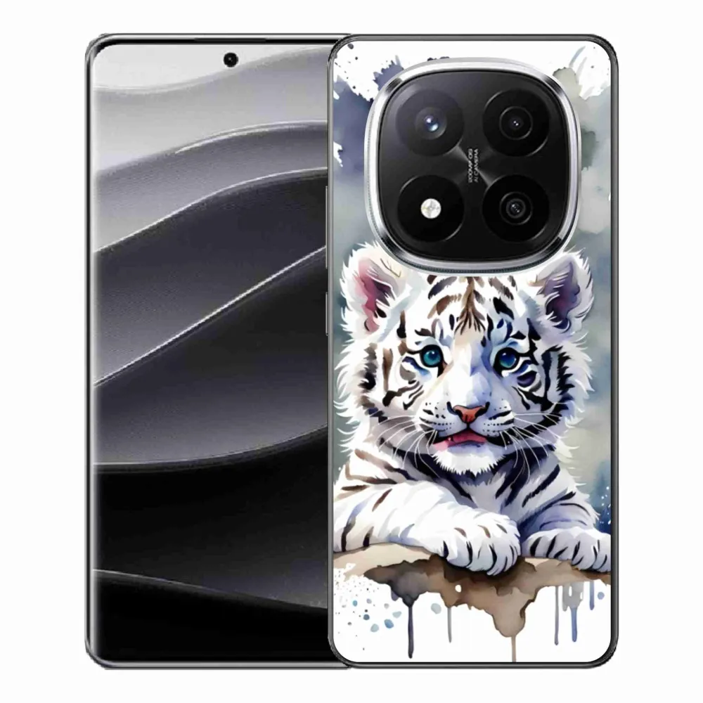 Psí pouzdro na Xiaomi Redmi Note 14 Pro+ 5G - mládě bílého tygra poskytuje všechny výhody gelových obalů, a to v zajímavém designu.