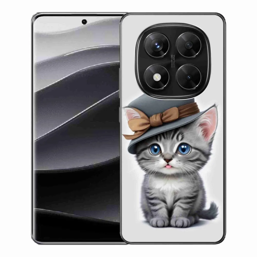 Pružný gelový obal mmCase s obrázkem na Xiaomi Redmi Note 14 Pro 5G/Poco X7 5G - kotě s kloboukem