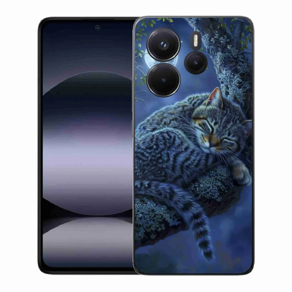 Kočičí pouzdro na Xiaomi Redmi Note 14 - spící kočka poskytuje všechny výhody gelových obalů, a to v zajímavém designu.