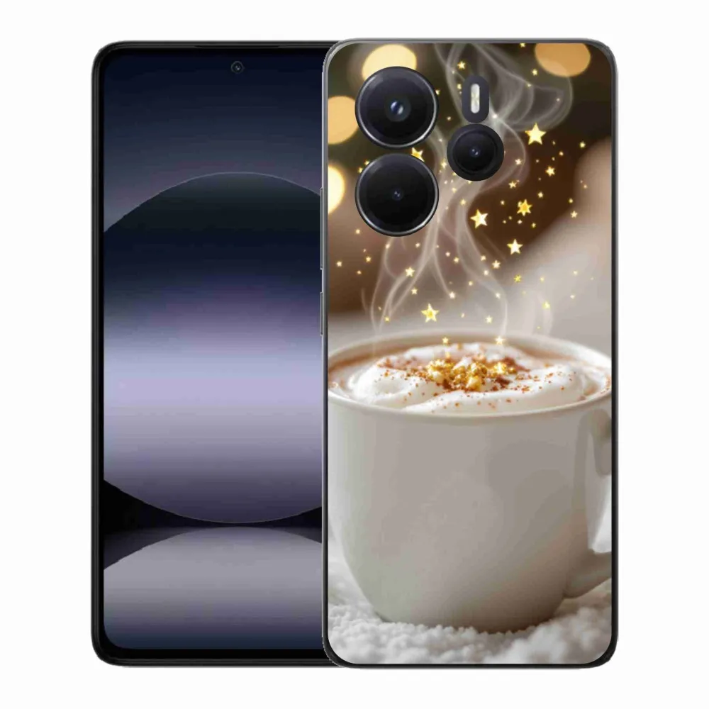 Pružný gelový obal mmCase s obrázkem na Xiaomi Redmi Note 14 - vánoční horký nápoj