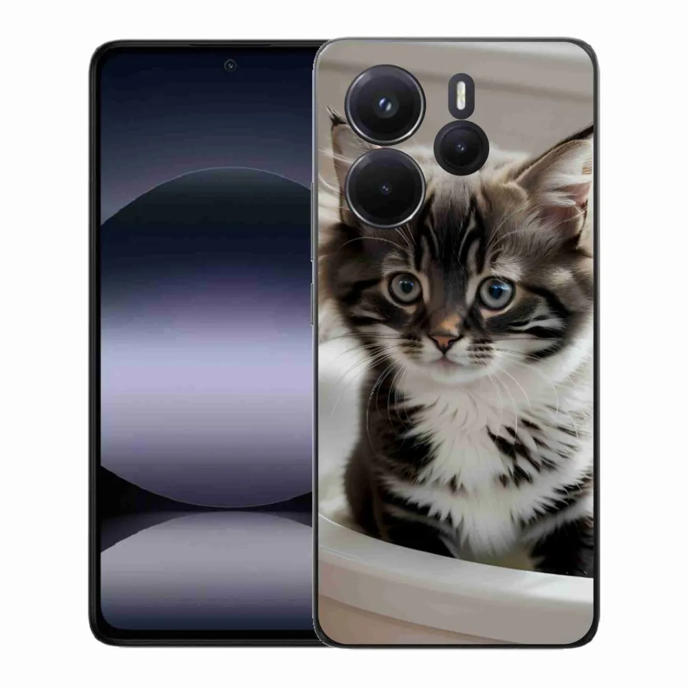 Pružný gelový obal mmCase s obrázkem na Xiaomi Redmi Note 14 - zvědavé kotě