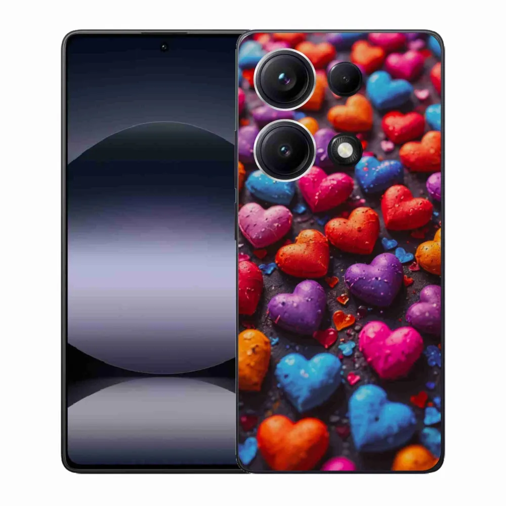 Pouzdro na Xiaomi Redmi Note 14S - barevná srdce poskytuje všechny výhody gelových obalů, a to v zajímavém designu.