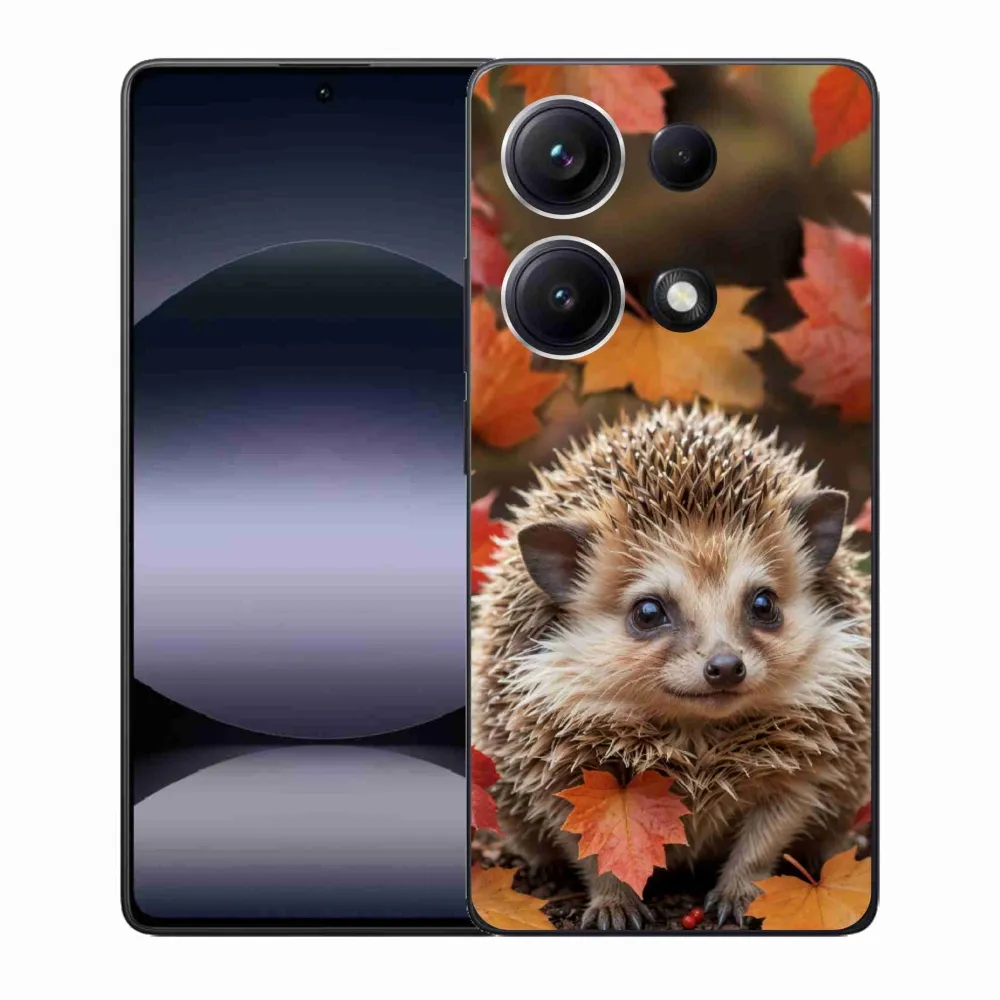 Zvířecí pouzdro na Xiaomi Redmi Note 14S - ježek v listí poskytuje všechny výhody gelových obalů, a to v zajímavém designu.