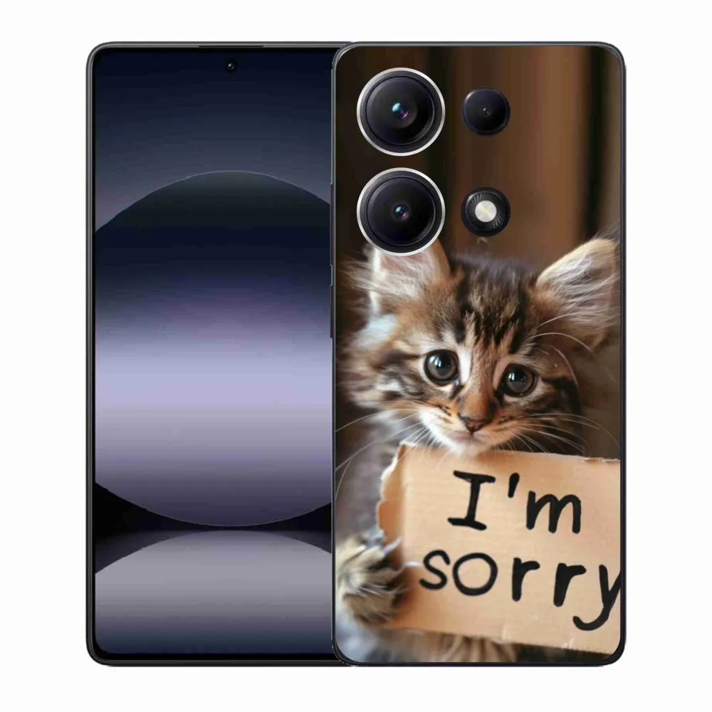 Pružný gelový obal mmCase s obrázkem na Xiaomi Redmi Note 14S - kočíčí omluva
