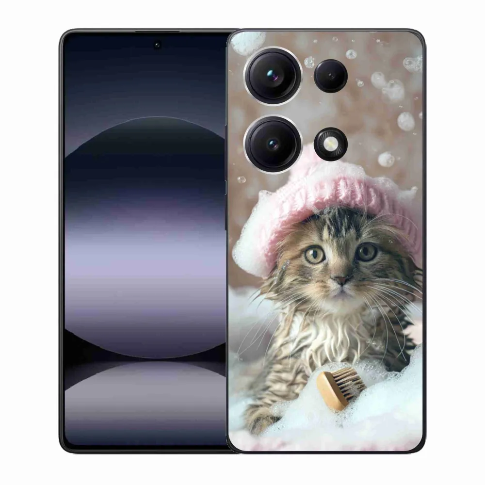 Pružný gelový obal mmCase s obrázkem na Xiaomi Redmi Note 14S - kotě a koupel