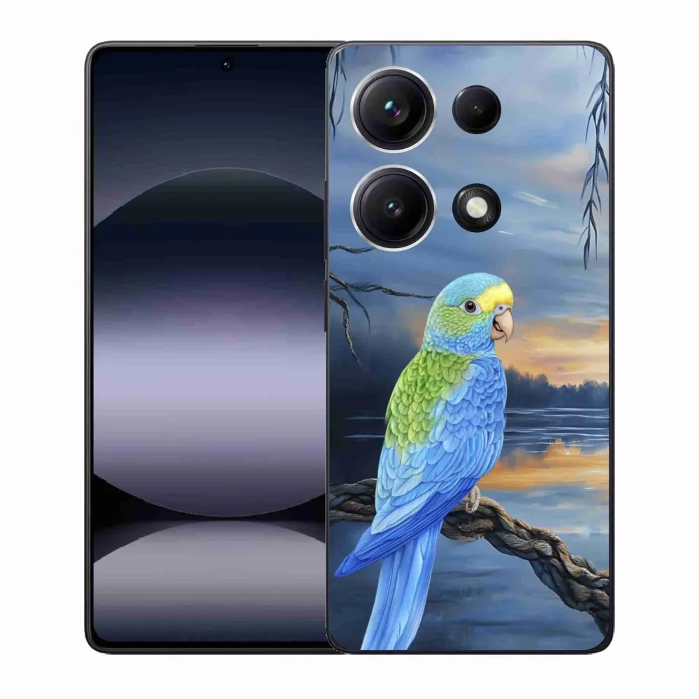 Pružný gelový obal mmCase s obrázkem na Xiaomi Redmi Note 14S - modrý papoušek