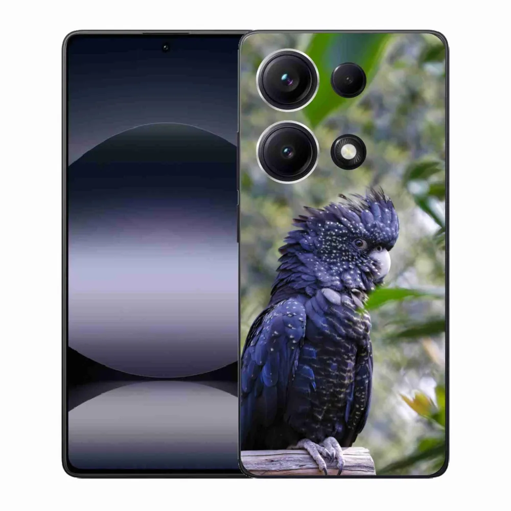 Pružný gelový obal mmCase s obrázkem na Xiaomi Redmi Note 14S - papoušek kakadu černý