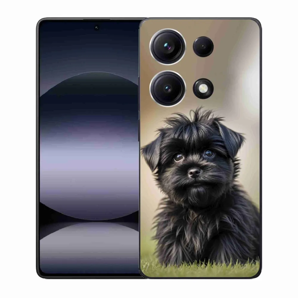 Psí pouzdro na Xiaomi Redmi Note 14S - roztomilý černý pejsek poskytuje všechny výhody gelových obalů, a to v zajímavém designu.