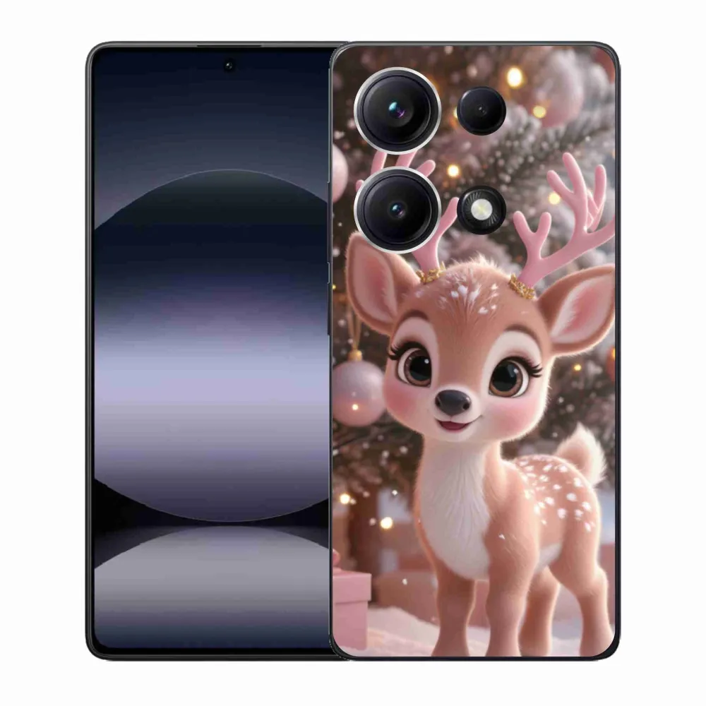 Vánoční pouzdro na Xiaomi Redmi Note 14S - roztomilý sob poskytuje všechny výhody gelových obalů, a to v zajímavém designu.