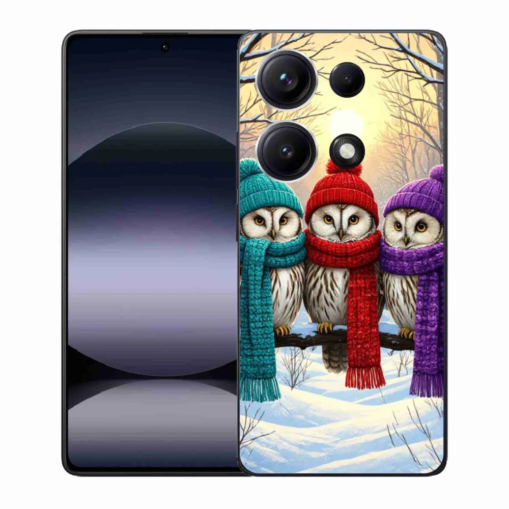Vánoční pouzdro na Xiaomi Redmi Note 14S - soví přátelé poskytuje všechny výhody gelových obalů, a to v zajímavém designu.