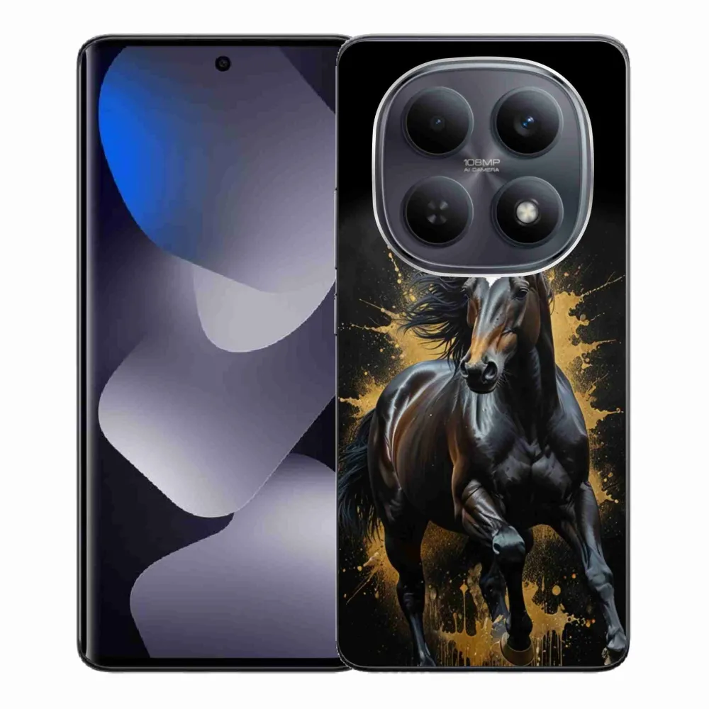 Pružný gelový obal mmCase s obrázkem na Xiaomi Redmi Note 15 4G/5G/Poco M8 5G - elegantní černý hřebec
