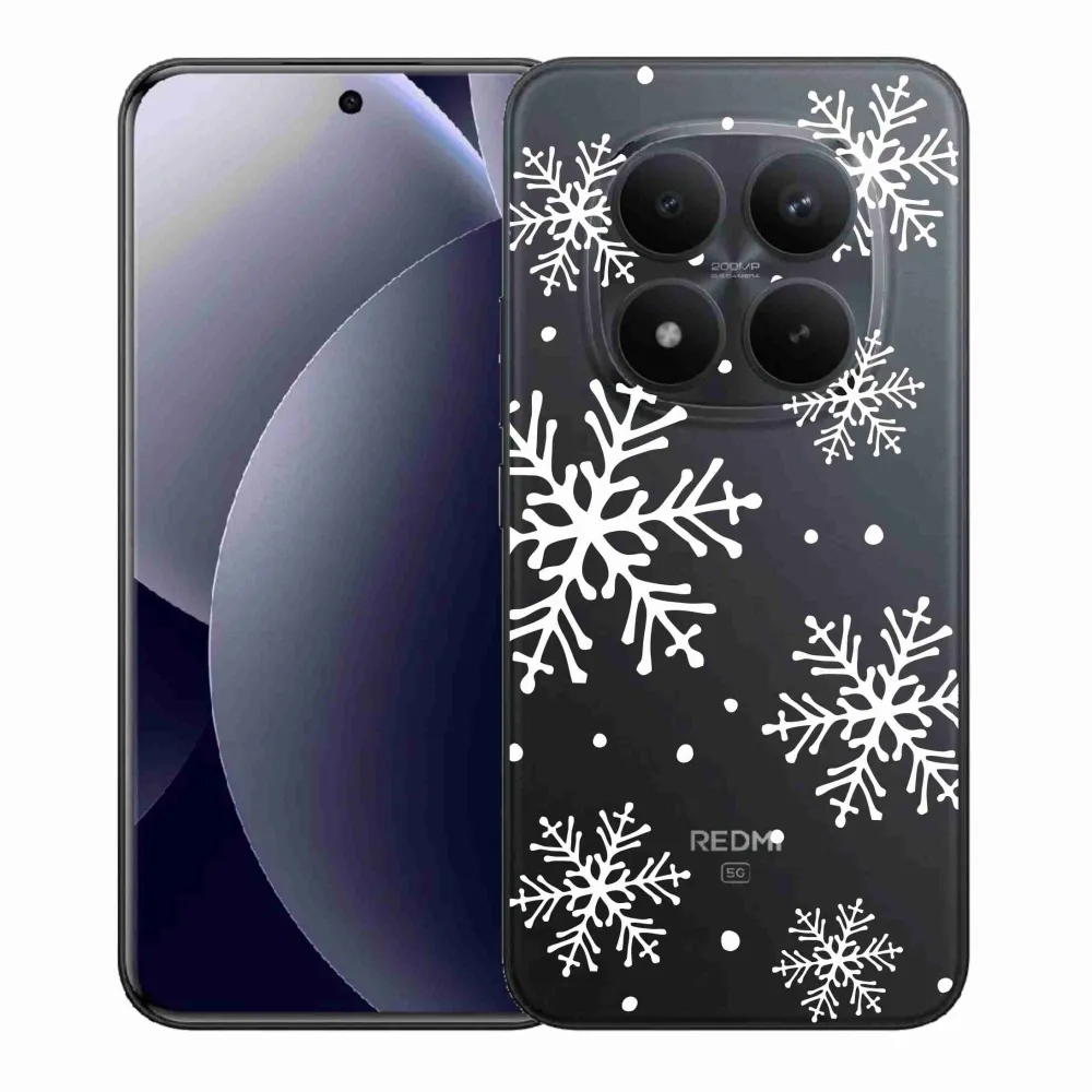 Pružný gelový obal mmCase s obrázkem na Xiaomi Redmi Note 15 Pro+ 5G/Xiaomi Poco M8 Pro 5G - bílé vločky na průhledném pozadí