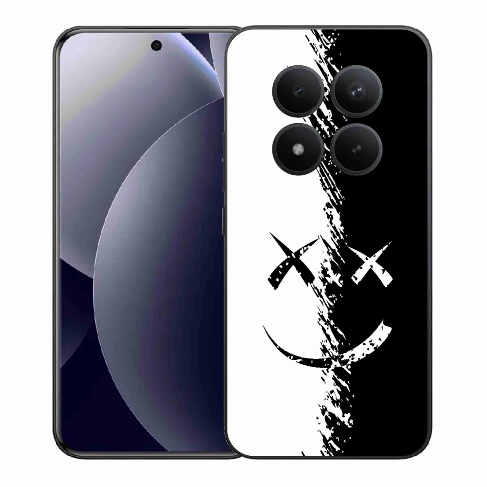 Pouzdro s černobílým smajlíkem na Xiaomi Redmi Note 15 Pro+ 5G/Xiaomi Poco M8 Pro 5G poskytuje všechny výhody gelových krytů, a to v zajímavém designu.