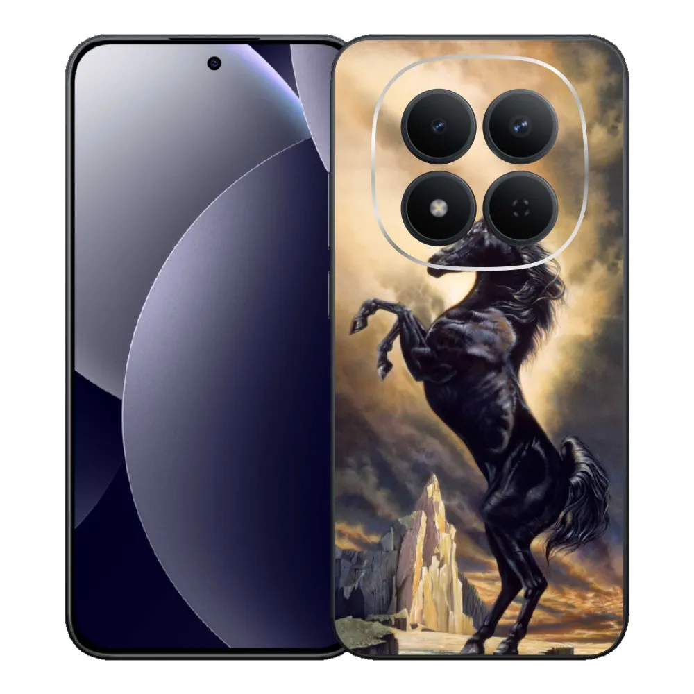 Pružný gelový obal mmCase s obrázkem na Xiaomi Redmi Note 15 Pro 5G - černý kreslený kůň