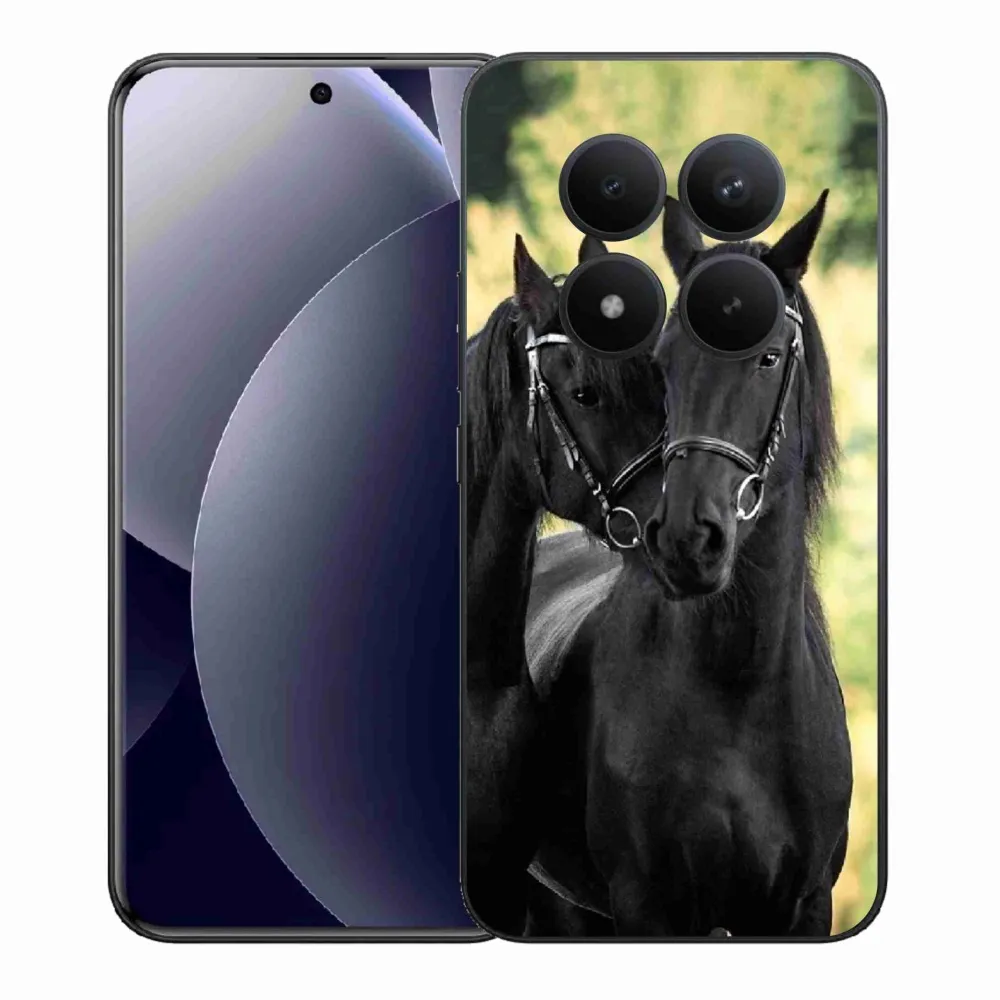 Pouzdro s motivem koní na Xiaomi Redmi Note 15 Pro+ 5G/Xiaomi Poco M8 Pro 5G - dva černí koně poskytuje všechny výhody gelových krytů, a to v zajímavém designu.
