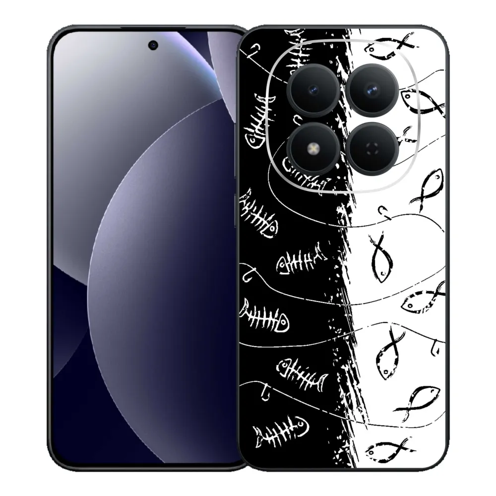 Pouzdro pro rybáře na Xiaomi Redmi Note 15 Pro 5G - kostry a rybky poskytuje všechny výhody gelových krytů, a to v zajímavém designu.