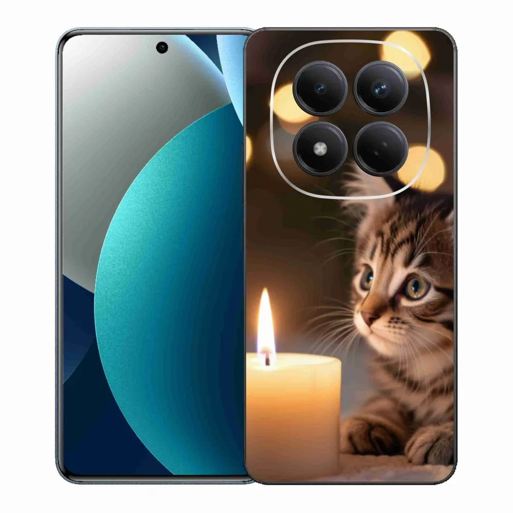 Pružný gelový obal mmCase s obrázkem na Xiaomi Redmi Note 15 Pro - kotě a svíčka