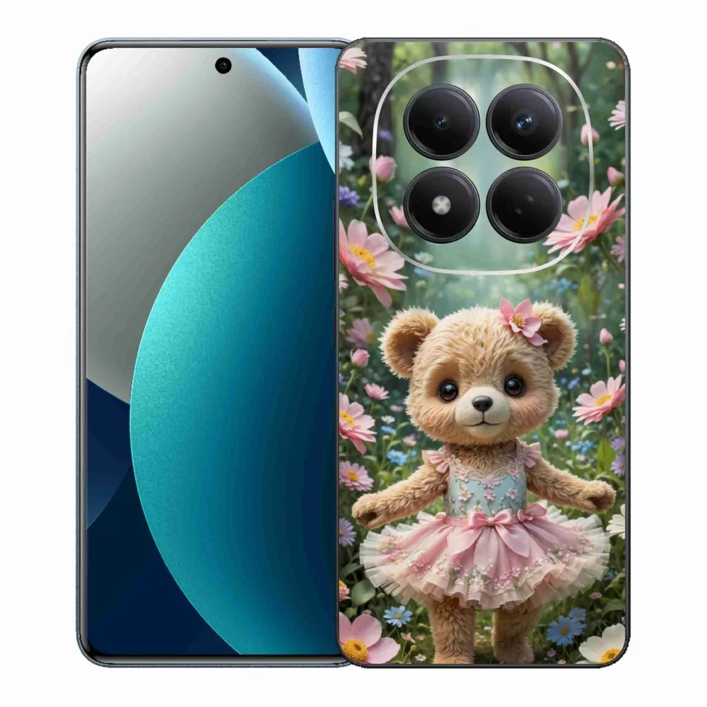 Pružný gelový obal mmCase s obrázkem na Xiaomi Redmi Note 15 Pro - roztomilý medvídek v květinách