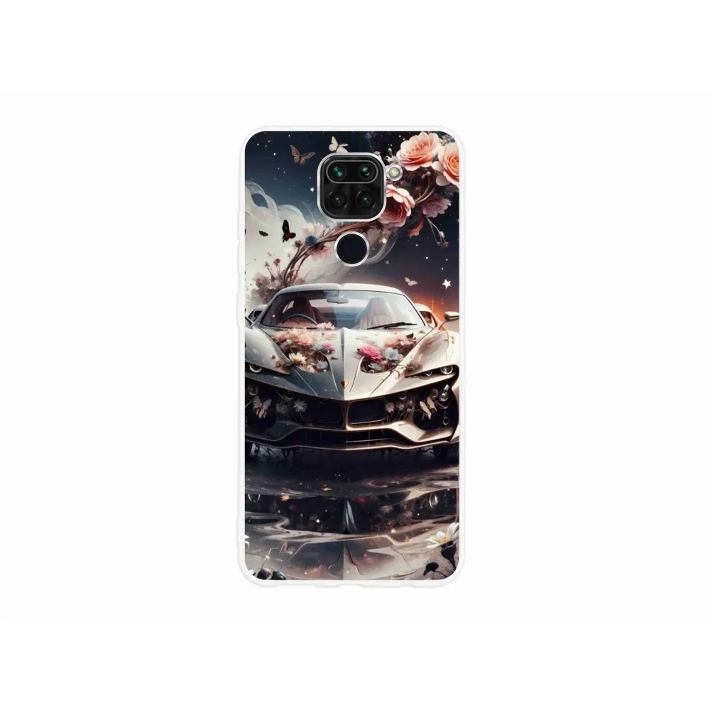 Pouzdro na Xiaomi Redmi Note 9 - květinový sportovní vůz poskytuje všechny výhody gelových obalů, a to v zajímavém designu.