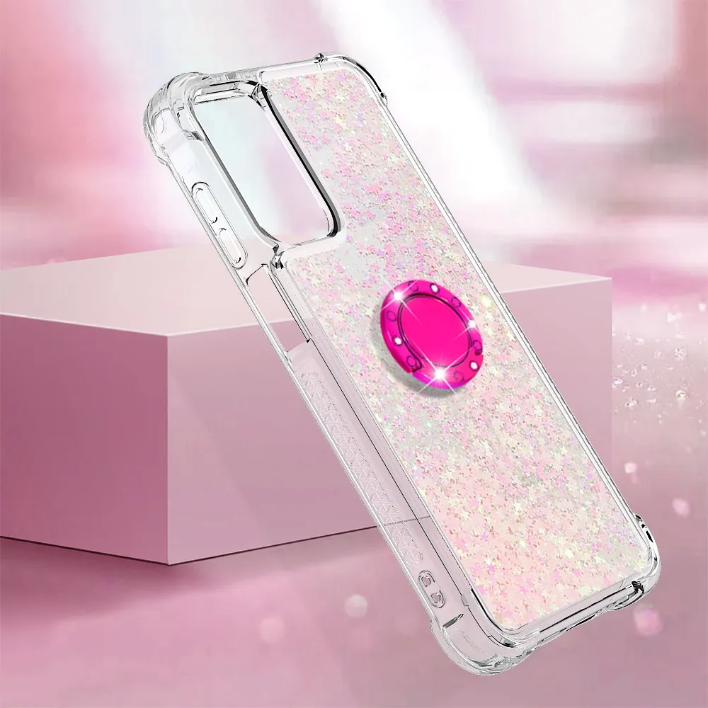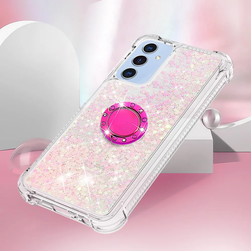 Glitt přesýpací gelový obal s kroužkem na prst na Samsung Galaxy A17 4G/5G - růžový/hvězdičky