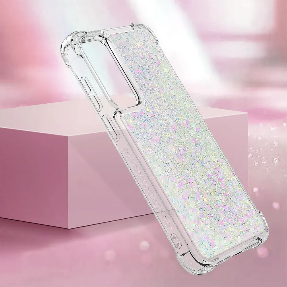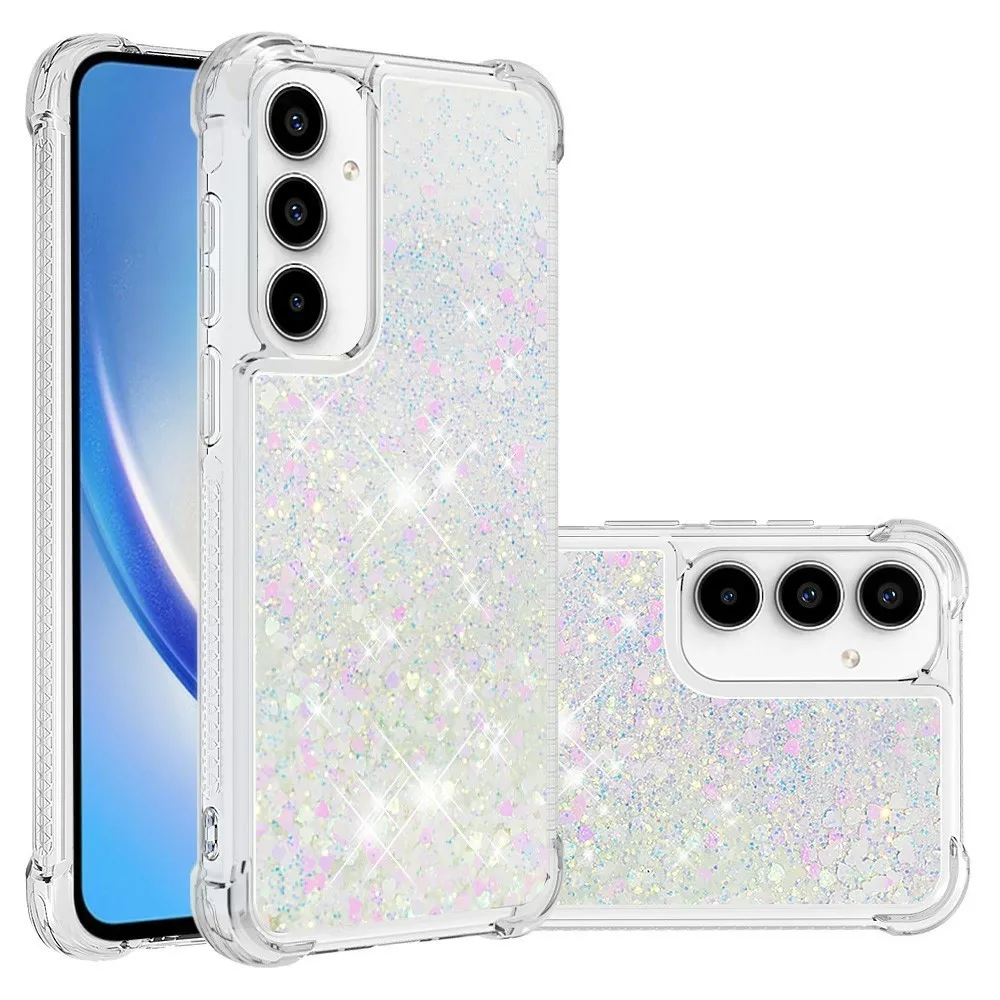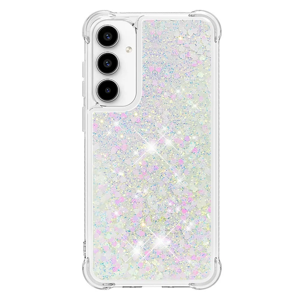 Glitter přesýpací gelový obal na Samsung Galaxy A37 5G - růžovostříbrný/srdíčka