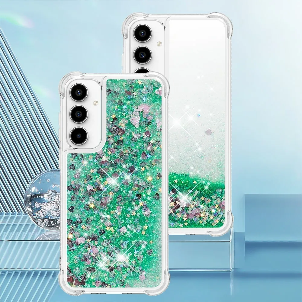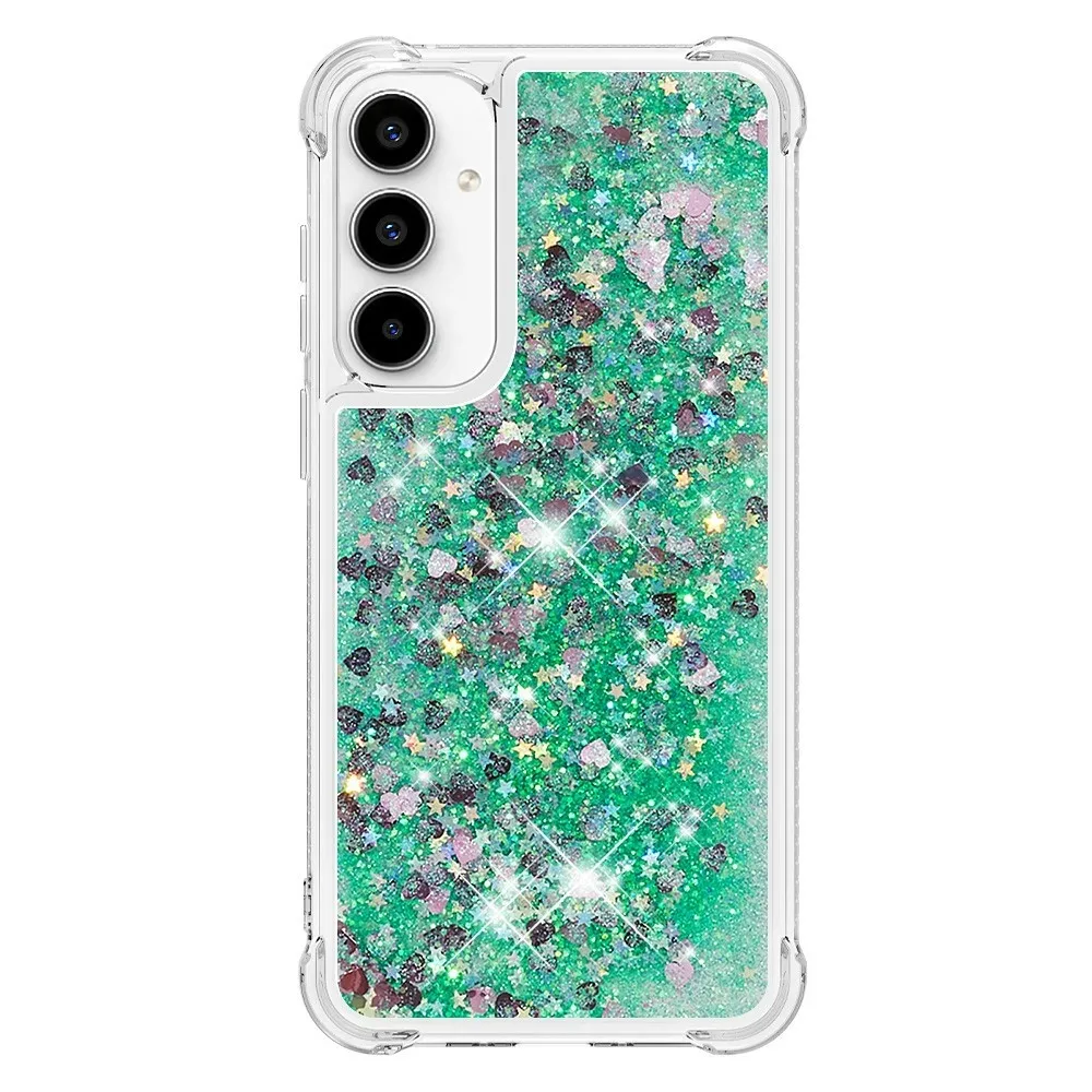 Glitter přesýpací gelový obal na Samsung Galaxy A37 5G - zelený/srdíčka