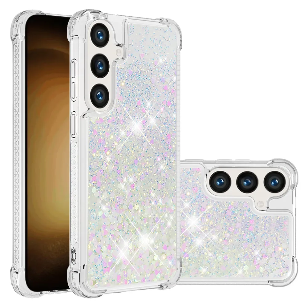 Glitter přesýpací gelový obal na Samsung Galaxy S26+ - růžovostříbrný/srdíčka