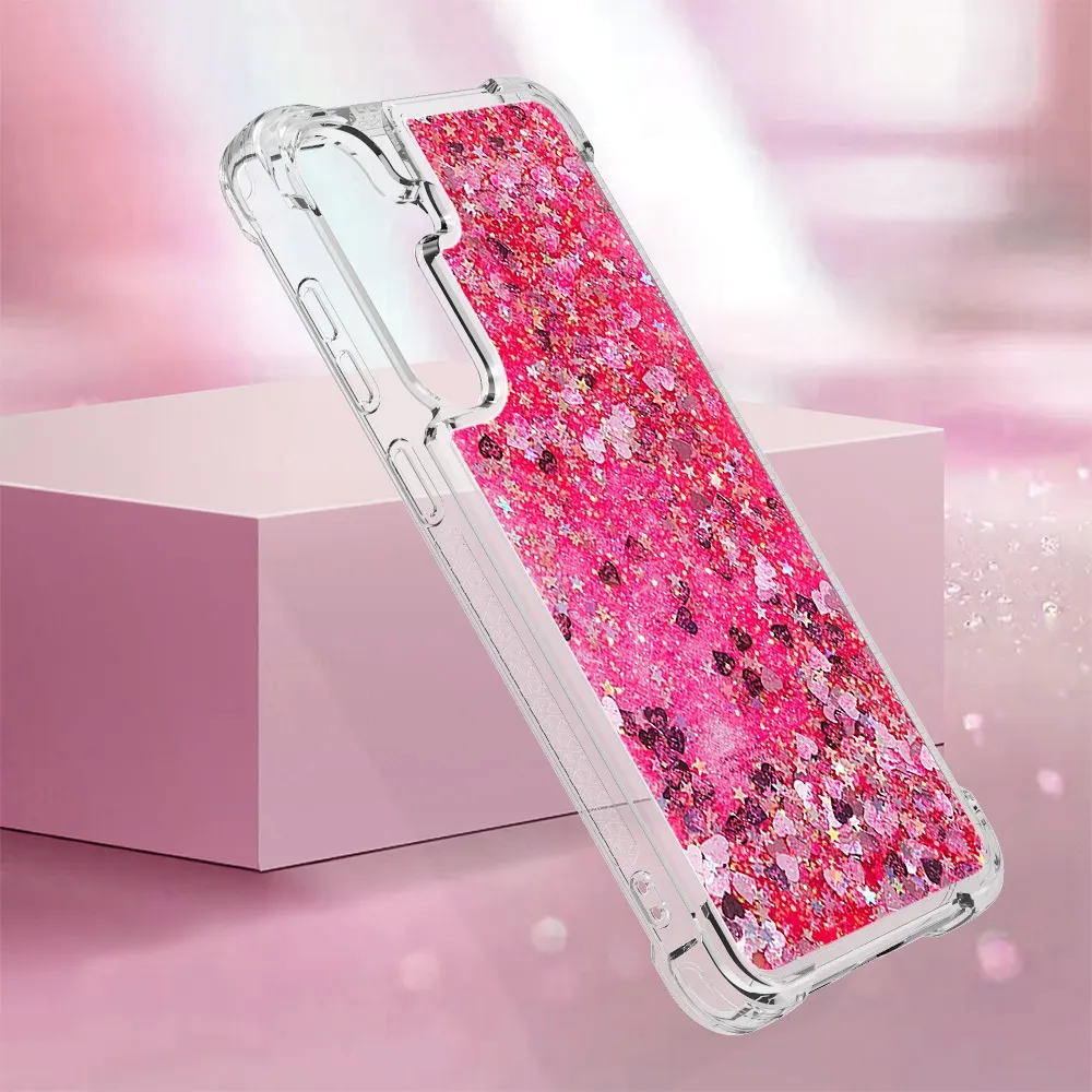 Růžový se srdíčky přesýpací gelový kryt Glitter na mobil Samsung Galaxy S26/S26 Pro