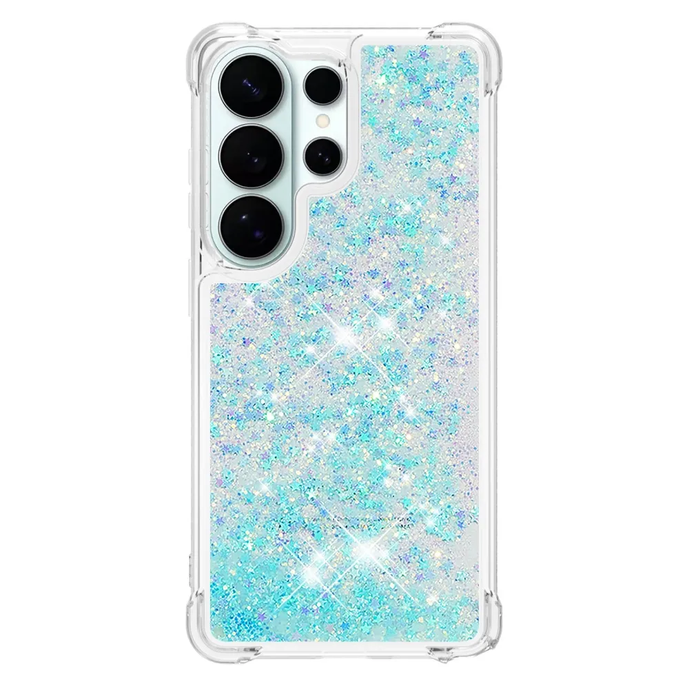 Glitter přesýpací gelový obal na Samsung Galaxy S26 Ultra - modrý/hvězdičky