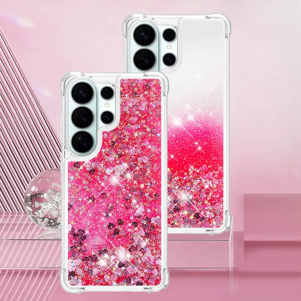 Glitter přesýpací gelový obal na Samsung Galaxy S26 Ultra - růžový/srdíčka