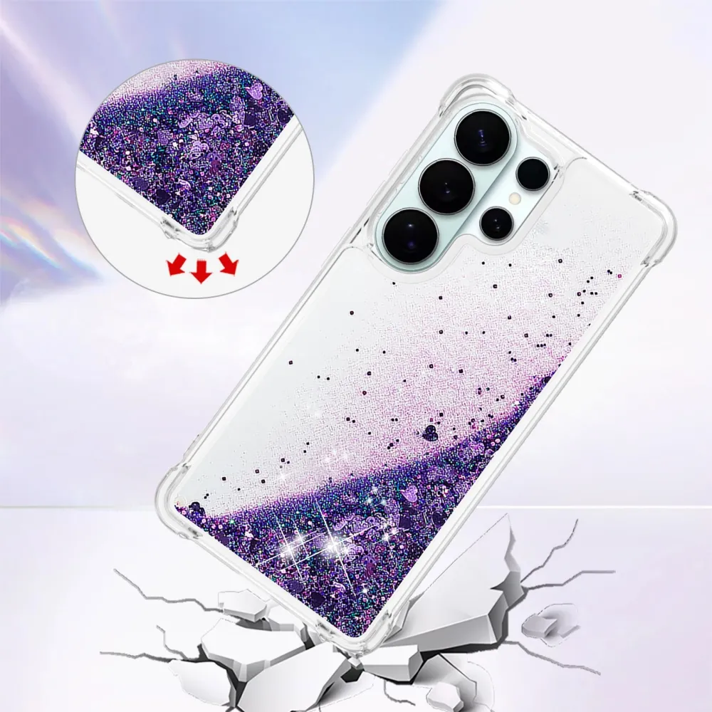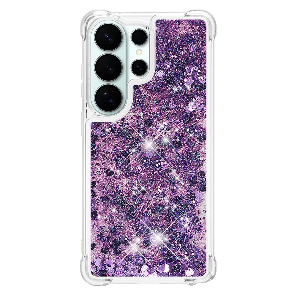 Glitter přesýpací gelový obal na Samsung Galaxy S26 Ultra - tmavěfialový/srdíčka