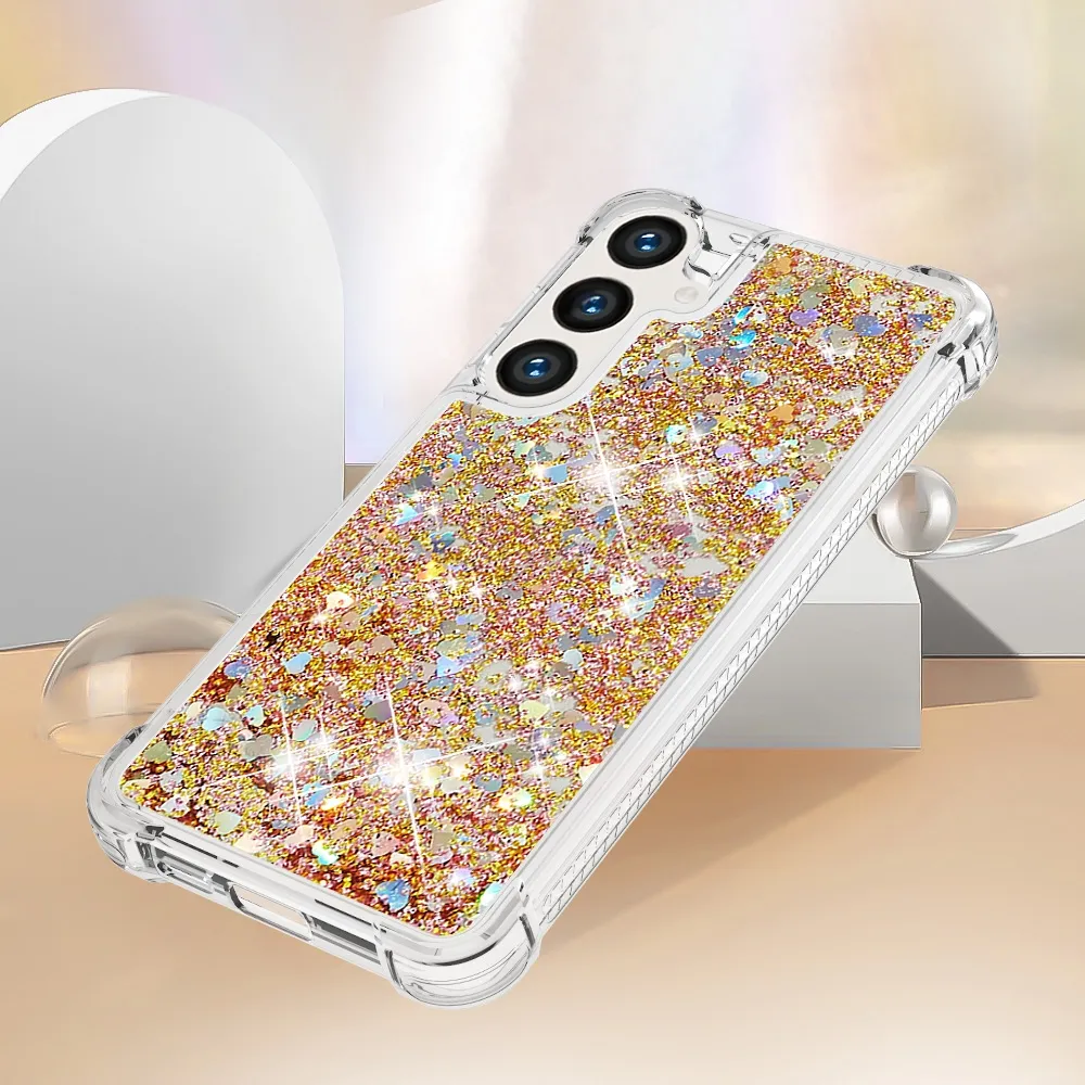 Glitter přesýpací gelový obal na Samsung Galaxy S26+ - zlatý/srdíčka