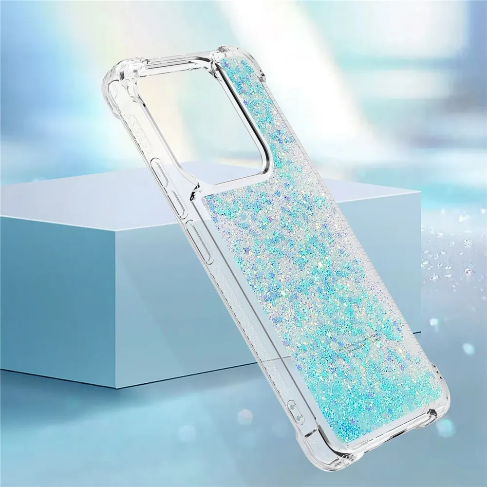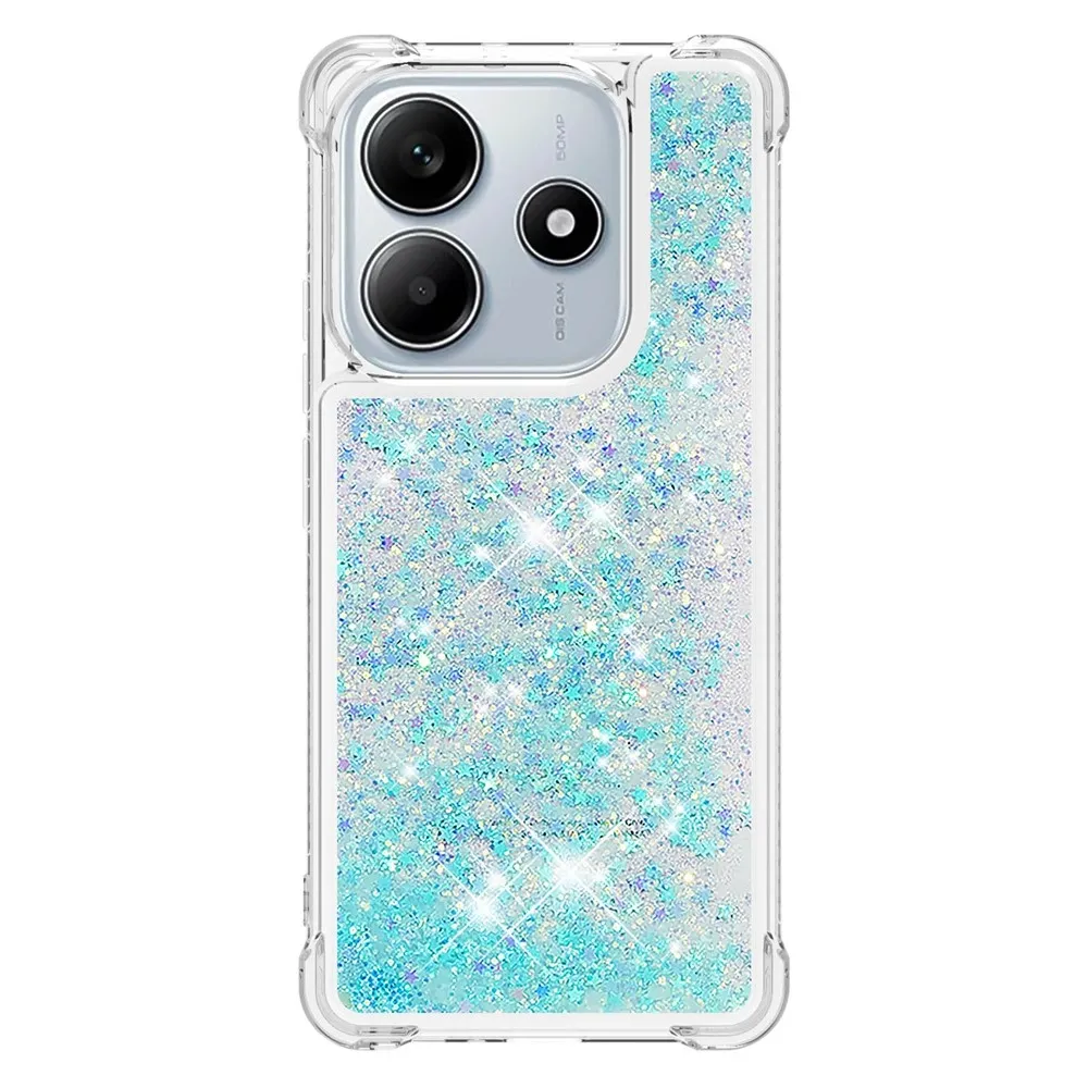 Glitter přesýpací gelový obal na Xiaomi Redmi Note 14 5G - modrý/hvězdičky
