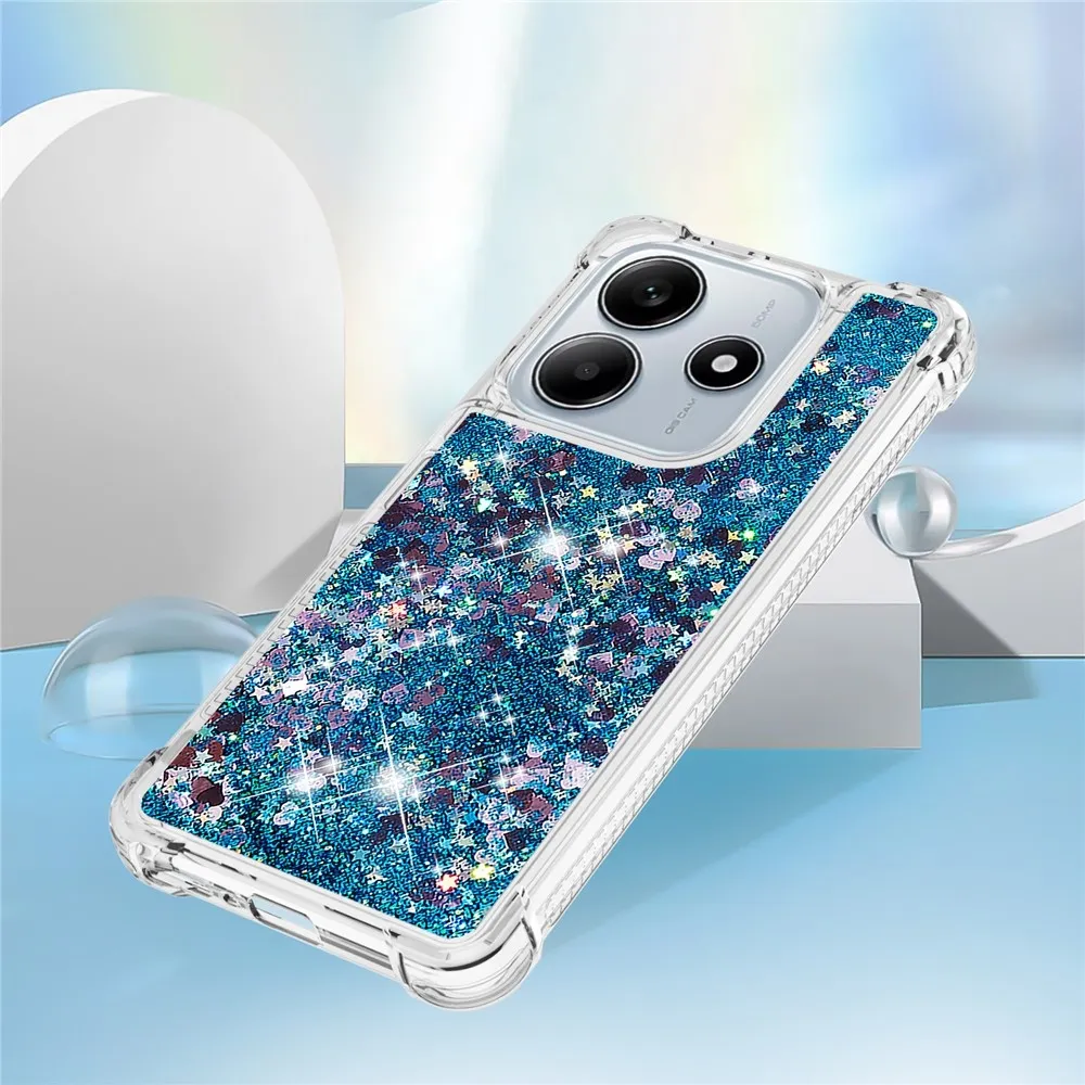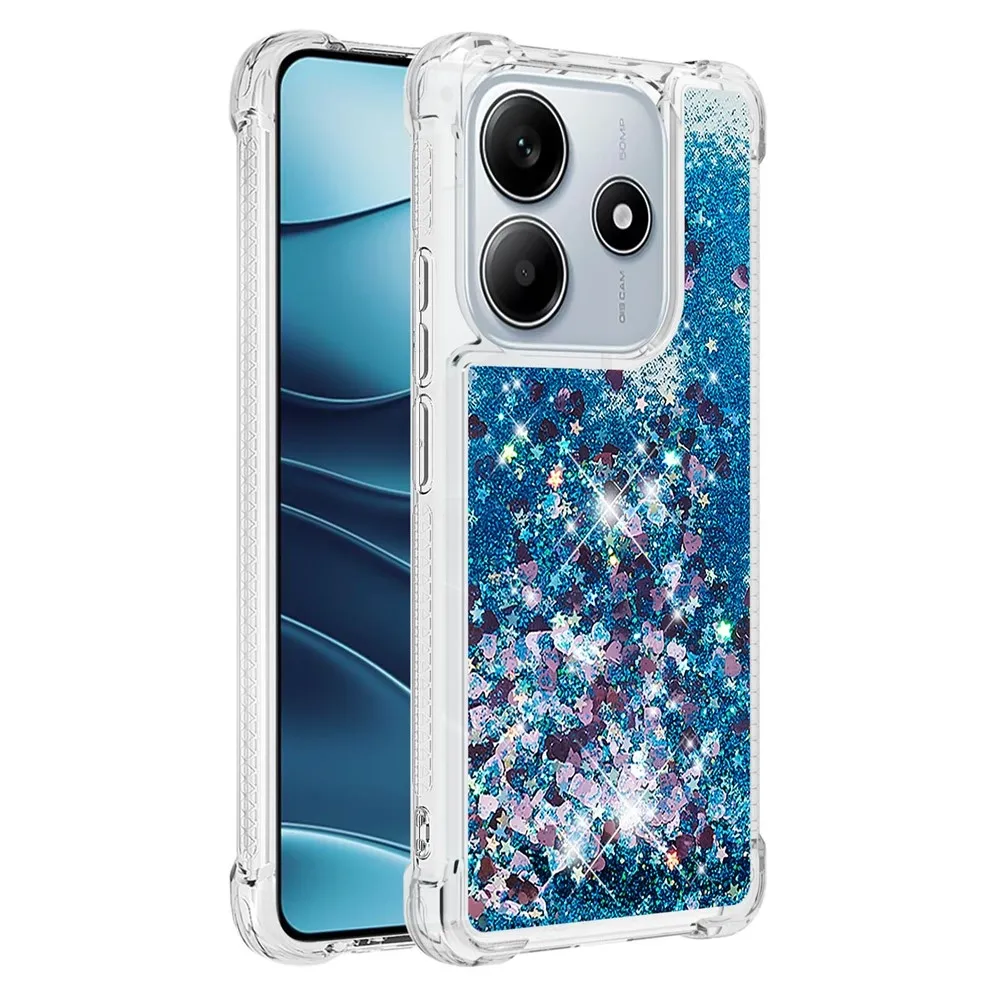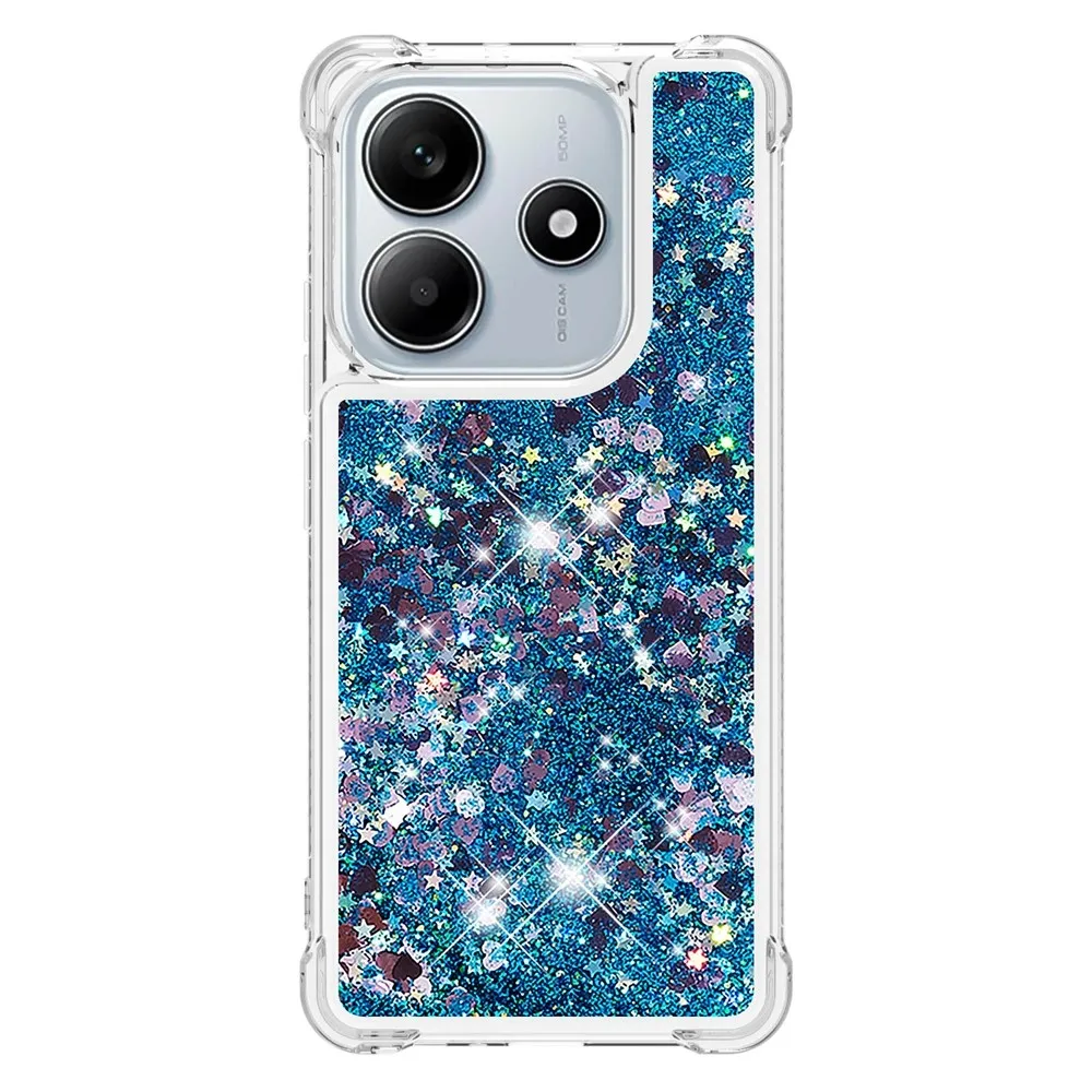 Glitter přesýpací gelový obal na Xiaomi Redmi Note 14 5G - modrý/srdíčka