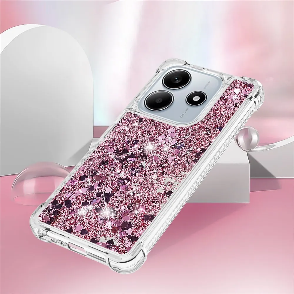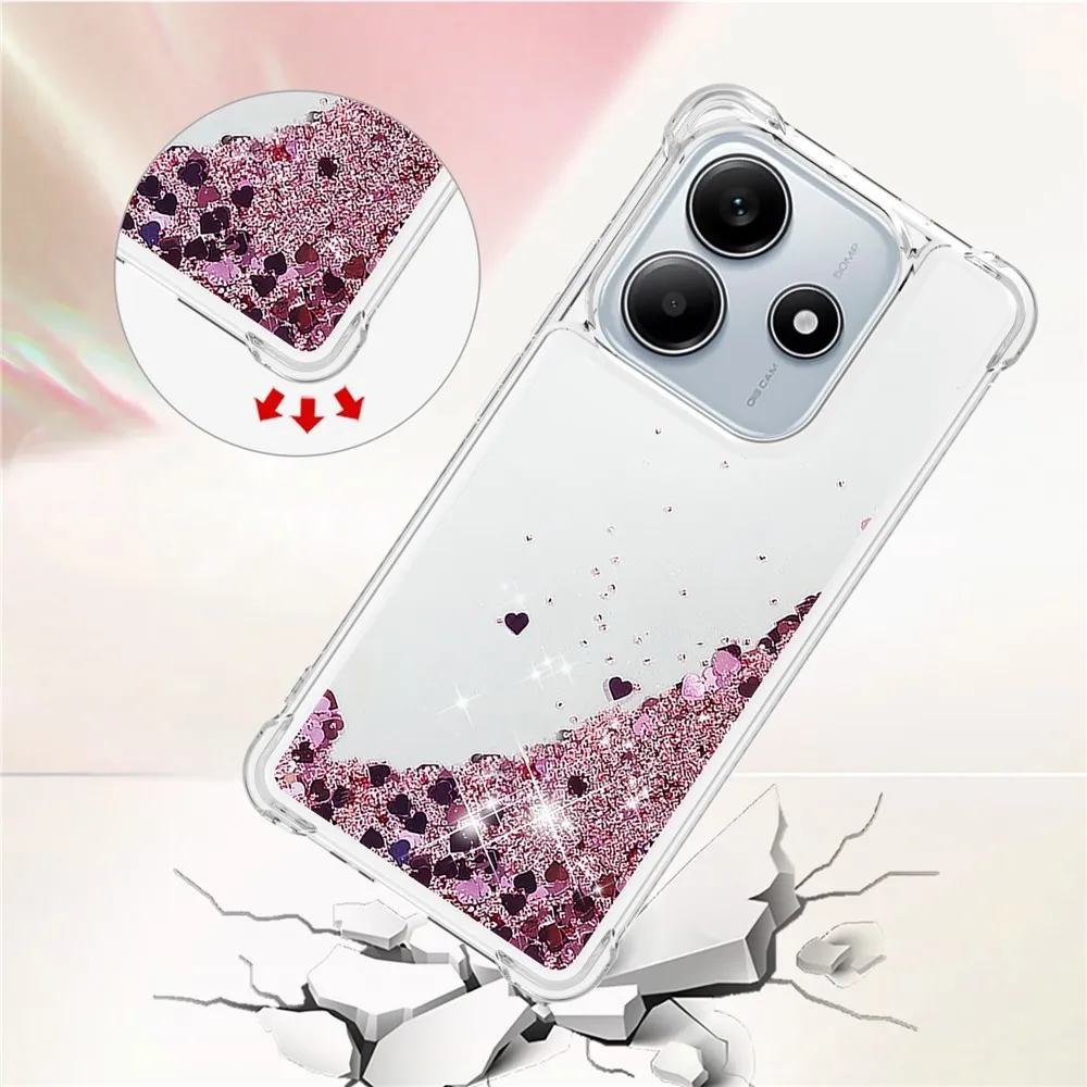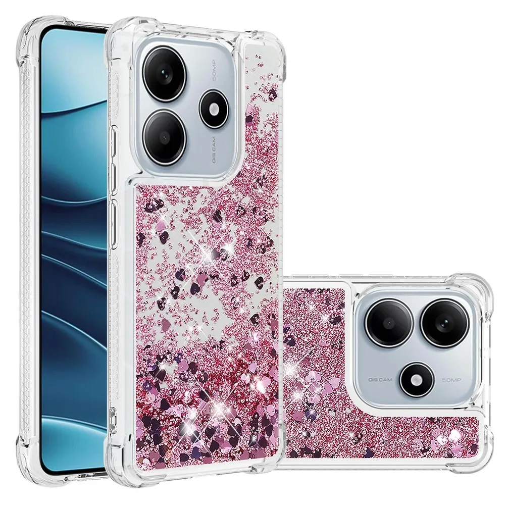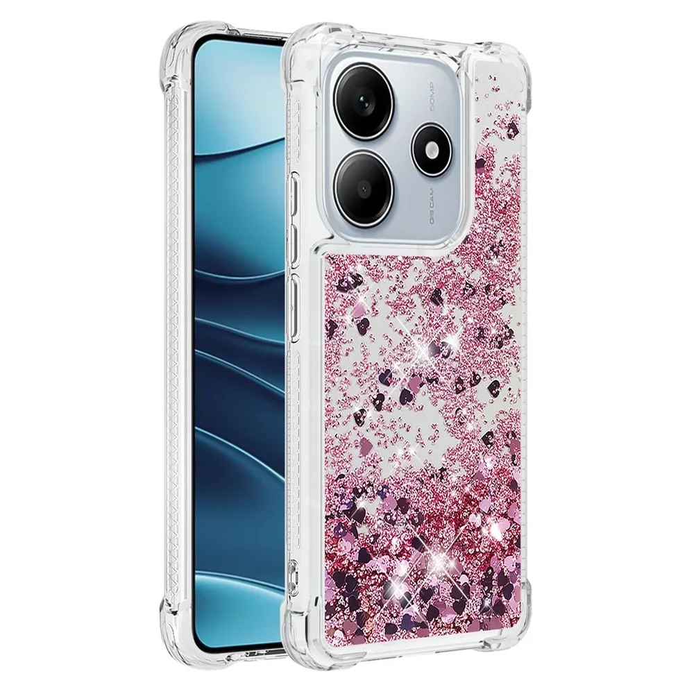 Glitter přesýpací gelový obal na Xiaomi Redmi Note 14 5G - růžovozlatý/srdíčka