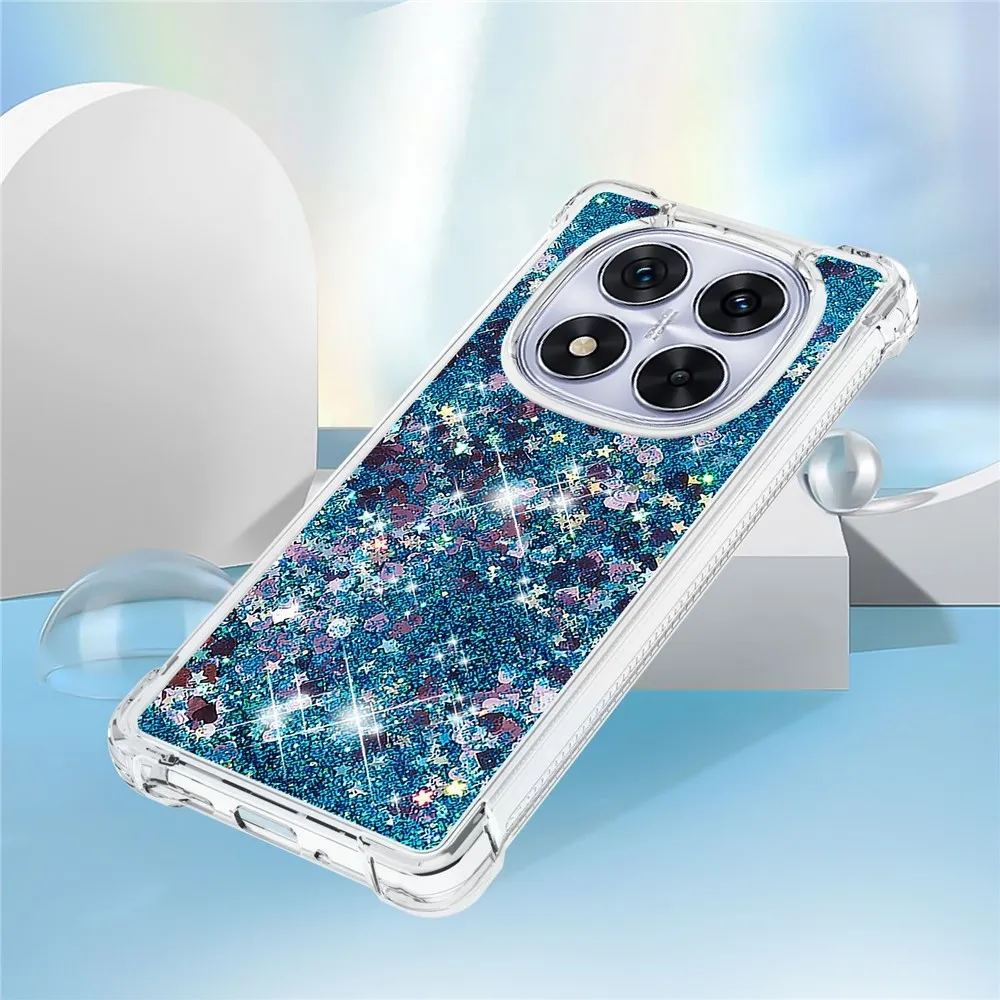 Glitter přesýpací gelový obal na Xiaomi Redmi Note 14 Pro 5G/Poco X7 5G - modrý/srdíčka
